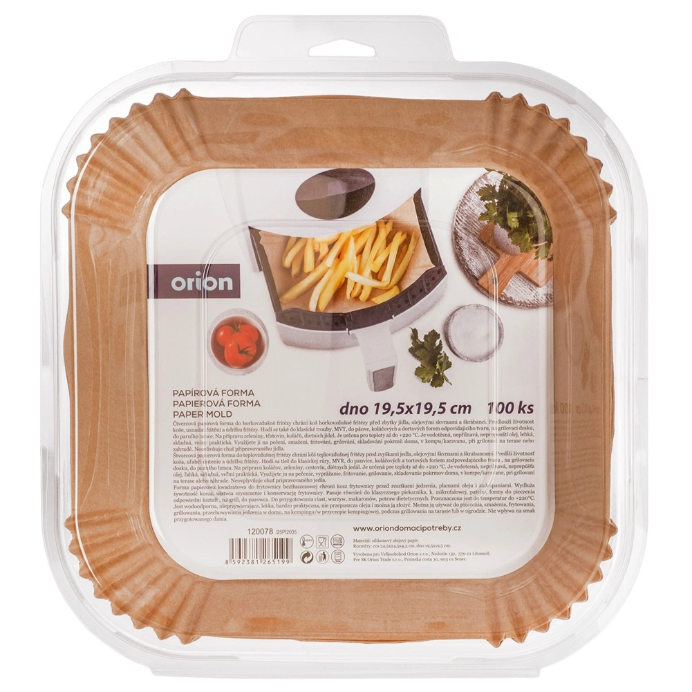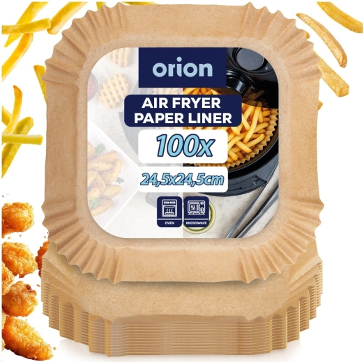 Wkładki sprawdzą się podczas pieczenia, smażenia i podgrzewania. Wymiar 24,5 × 24,5 cm idealnie pasuje do kwadratowych koszy frytkownic.