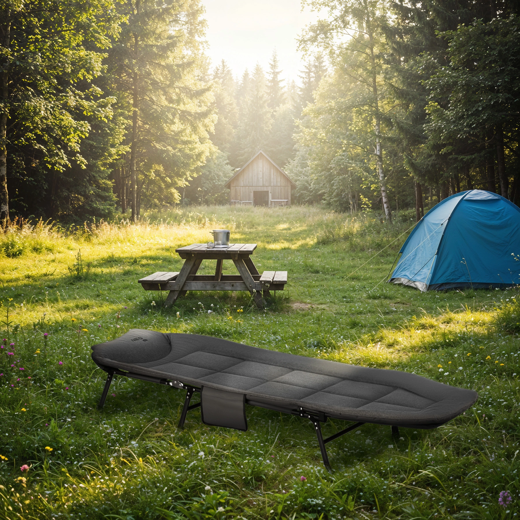 Wytrzymała stalowa rama o nośności 120 kg oraz wyściełana powierzchnia z Oxford 600D 4D zapewniają podparcie i komfort podczas kempingu i w domu.