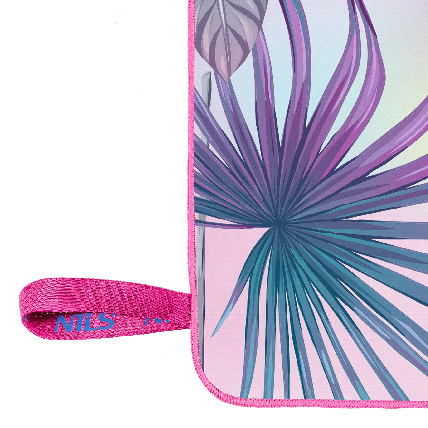 Komfort gdziekolwiek jesteś – ręcznik NILS Camp z delikatnej mikrofibry ma porowatą strukturę, która zapewnia bardzo szybkie wchłanianie wilgoci i schnięcie. Stylowy tropikalny design z ananasami i liśćmi palm w odcieniach fioletu, turkusu i różu doda Twojemu wyposażeniu świeżego wyglądu.