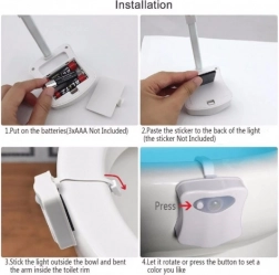 - ELASTYCZNY UCHWYT – lampę można łatwo i szybko zamocować na krawędzi toalety bez użycia dodatkowych narzędzi.