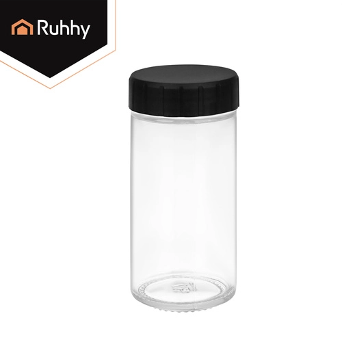 Każdy słoiczek o pojemności 90 ml chroni aromat i smak. Przezroczyste szkło ułatwia kontrolę zawartości, czarne zakrętki pasują do designu stojaka.