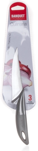 Praktyczny nóż ze stalowym ostrzem i ergonomiczną plastikową rękojeścią z linii CULINARIA GREY został zaprojektowany do uniwersalnego zastosowania. Dzięki długości ostrza 12 cm doskonale nadaje się do krojenia warzyw, owoców oraz mniejszych kawałków mięsa. Wyważona konstrukcja zapewnia pewny chwyt i wygodną manipulację podczas codziennego gotowania.