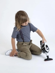 Dziecięcy odkurzacz BOSCH Unlimited marki Klein został zaprojektowany tak, aby jak najbardziej przypominał prawdziwe urządzenie. Dzięki swojemu wykonaniu motywuje dzieci do naśladowania dorosłych, uczy odpowiedzialności, a jednocześnie przynosi mnóstwo radości podczas codziennych domowych zabaw.