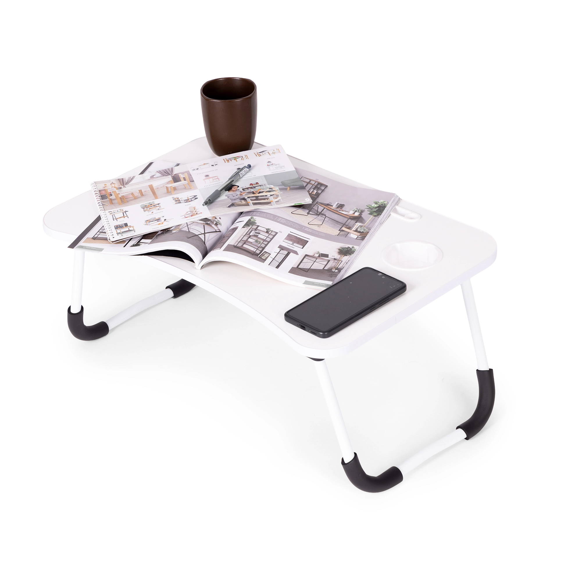 Praca, nauka i relaks wygodnie gdziekolwiek jesteś. Ten przenośny stolik zapewnia stabilną i podwyższoną powierzchnię dla laptopa, czytania lub śniadania do łóżka. Blat z laminowanej płyty wiórowej jest odporny na zabrudzenia i zarysowania, dzięki czemu długo zachowa elegancki wygląd.