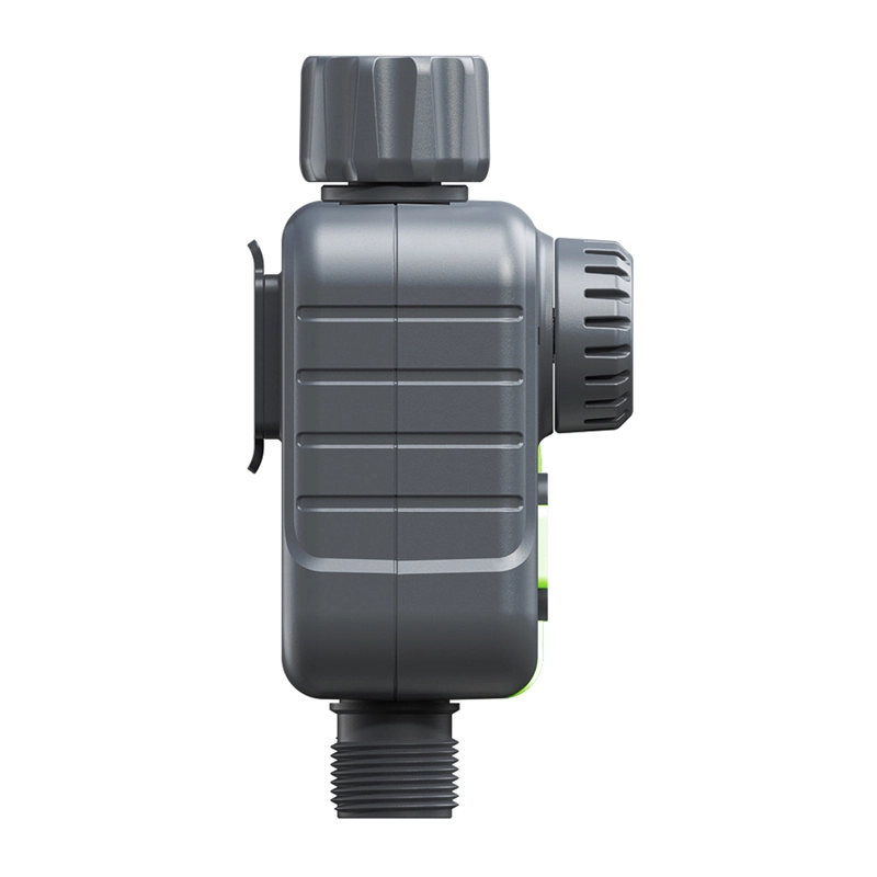 Obsługa jest intuicyjna dzięki dużemu wyświetlaczowi LCD 2,5", pokrętłu i funkcjonalnym przyciskom. Instalacja nie wymaga narzędzi – wystarczy podłączyć do kranu i węża. Praktyczny tryb ręczny uruchamia podlewanie w dowolnym momencie bez zmiany zapisanego programu. Funkcja opóźnienia podczas deszczu (24/48/72 h) pomaga oszczędzać wodę w okresach opadów, nie brakuje też ostrzeżenia o niskim poziomie baterii i automatycznego zamknięcia zaworu.