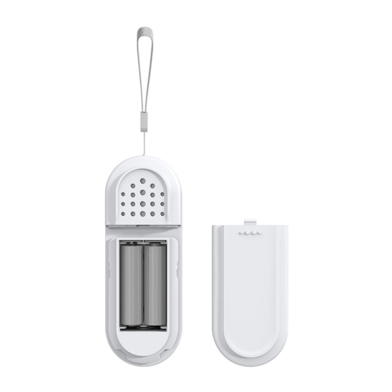Lekki czujnik z praktyczną pętelką łatwo zawiesisz lub postawisz. Zasilanie bateryjne umożliwia elastyczne rozmieszczenie.