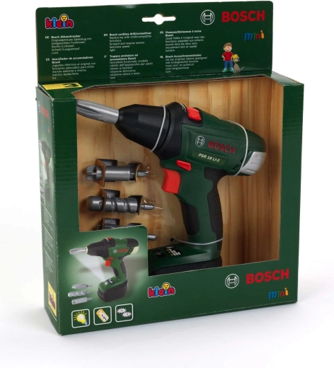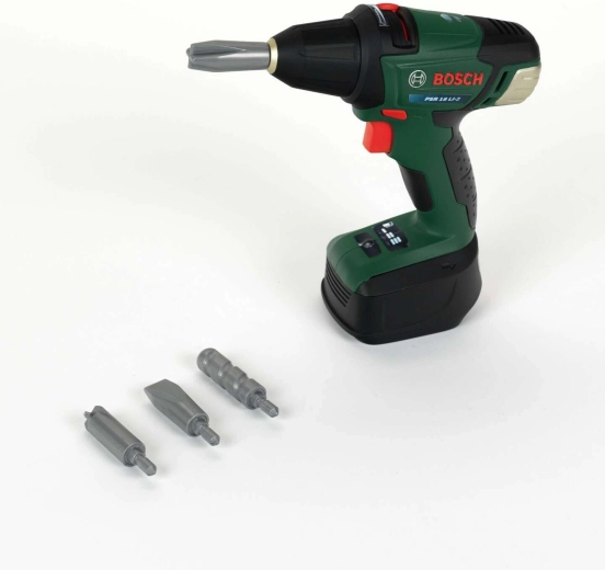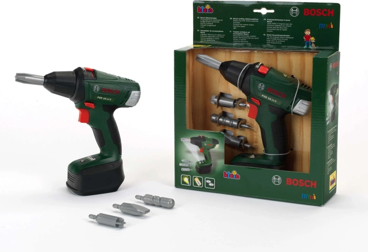 Realistyczna dziecięca wkrętarka akumulatorowa Bosch II marki Klein oferuje bezpieczne i zabawne naśladowanie pracy dorosłych. Ma wymienne bity, dwa biegi, prawe/lewe obroty oraz lampkę LED przy końcówce. Ergonomiczny uchwyt z miękkim wykończeniem świetnie leży w dziecięcej dłoni.