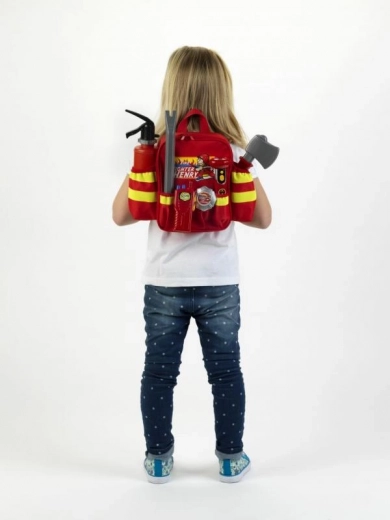 Plecaczek strażacko‑ratowniczy dla dzieci 3+. Zawiera gaśnicę, toporek, latarkę, krótkofalówkę i łom. Lekki plecaczek do kreatywnej zabawy małych strażaków.