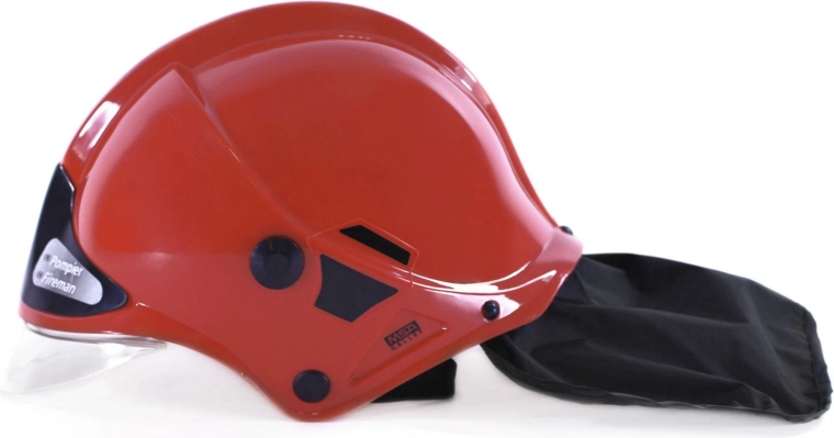 Ten czerwony hełm strażacki dla dzieci to licencjonowana replika MSA, zaprojektowana do bezpiecznej i kreatywnej zabawy. Zintegrowany odchylany wizjer chroni twarz, a czarna osłona karku naśladuje profesjonalne wyposażenie i dodaje realizmu zabawie.