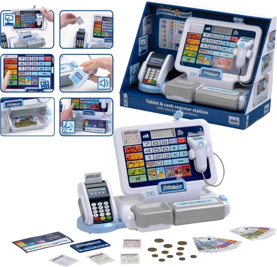 - Realistyczne funkcje: wyświetlacz z kalkulatorem, skaner, czytnik kart, dźwięki kasy.