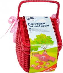Urokliwy kosz piknikowy z motywem kropek i serduszek mieści metalowy zestaw do herbaty, gotowy na każdą wyimaginowaną herbatkę. Solidne wykonanie z regulowanymi paskami na rzep i materiałową lamówką zapewnia łatwe przenoszenie i przechowywanie wszystkich elementów. Dzieci ćwiczą interakcje społeczne, motorykę oraz kreatywność.