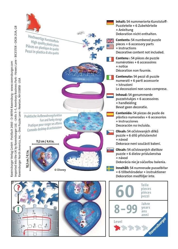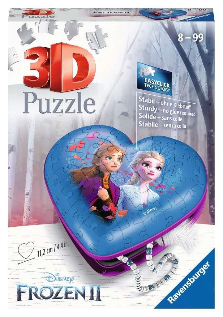 Złóż trójwymiarowe serce z motywem Disney Kraina Lodu 2 z plastikowych elementów w technologii EasyClick. Serce może służyć jako szkatułka na biżuterię i różne drobiazgi.