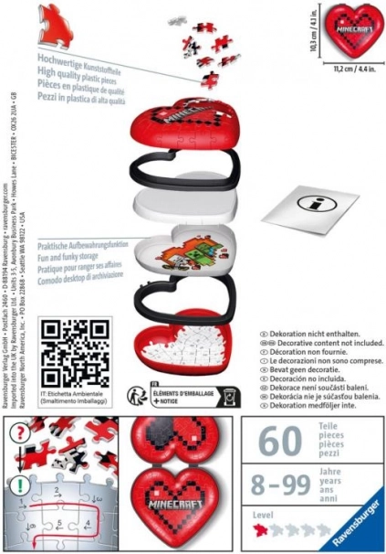 Ravensburger 3D puzzle serce Minecraft, 54 elementów