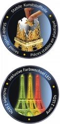 Każda część ma na swojej tylnej stronie numer, co ułatwia układanie według wzoru lub numerów. Dostarczane z zadrukowaną podkładką, dzięki której możesz pięknie wyeksponować gotowy model na półce lub stole. Wieża Eiffla, jeden z najsłynniejszych światowych budowli, może stać się ozdobą Twojego domu!