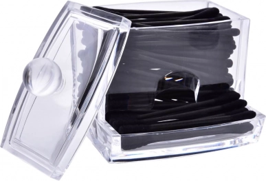 Przednie wycięcie umożliwia szybkie wyjęcie pojedynczego patyczka bez konieczności zdejmowania pokrywki – idealne do codziennego makijażu i pielęgnacji.