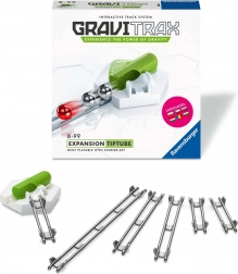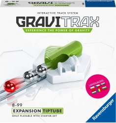 Rozszerzenie GraviTrax TipTube jest kompatybilne tylko z zestawem startowym. Opakowanie zawiera: 1 zasobnik akcji, 1 długą szynę, 2 średnie szyny i 3 krótkie szyny.