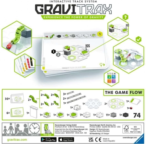 GRAVITRAX The Game Flow wciąga w świat grawitacji i sprytnego konstruowania. Projektuj i łącz różne układy torów, testuj nowe elementy i obserwuj, jak kulki poruszają się po zaskakujących i efektownych trasach. Każde złożenie wspiera logiczne myślenie, kreatywność i rozwiązywanie problemów.