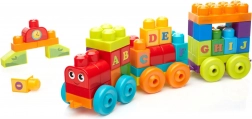 Ten kolorowy zestaw edukacyjny umożliwia połączenie trzech podwozi na kółkach w pociąg oraz układanie na nich klocków z literami. Dzieci w formie zabawy uczą się alfabetu, tworzą pierwsze słowa i ćwiczą koordynację ręka–oko.