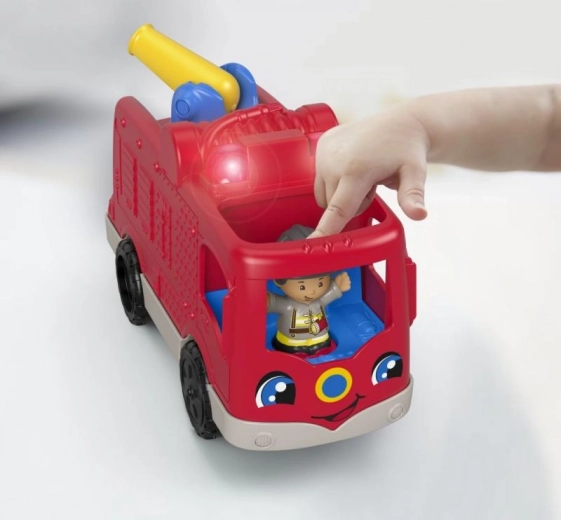Wyrusz na misję ratunkową z wozem strażackim LITTLE PEOPLE! Dwie figurki strażaków zapewniają dzieciom mnóstwo interaktywnej zabawy – po naciśnięciu siedzenia słychać realistyczne dźwięki, wesołe piosenki oraz kwestie o współpracy i pomocy. Obrócenie pokrętła aktywuje migające światła i uruchamia wirujący wąż gaśniczy, co wspiera wyobraźnię i naukę przyczyny i skutku.