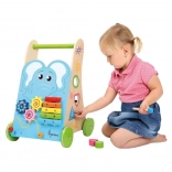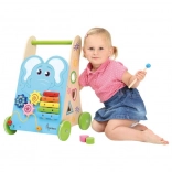Wesprzyj pierwsze kroki i ciekawość swojego dziecka dzięki temu wysokiej jakości drewnianemu chodzikowi ze słoniem. Oferuje ksylofon o delikatnym brzmieniu, labirynt z koralikami, układankę–sorter kształtów oraz zębate kółka dla zabawy i rozwoju motoryki. Ciche gumowe koła chronią podłogę, a stabilna konstrukcja z drewna FSC zapewnia bezpieczną zabawę od 18 miesięcy.
