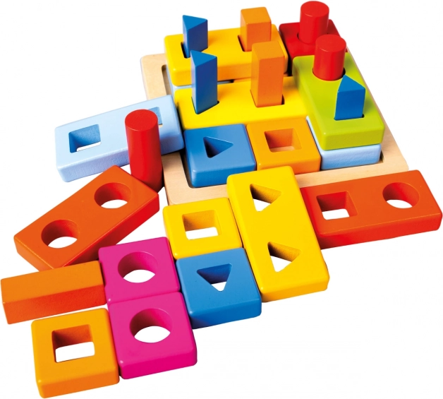 Prosta kolorowa łamigłówka z wieloma elementami o różnych kształtach, która rozjaśni każdą półkę. Rozwija logikę i małą motorykę dziecka i oferuje trwałe i solidne wykonanie z litego drewna.