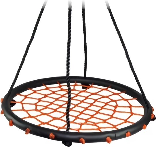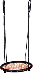 Okrągła huśtawka z plecionką linową, odpowiednia do użytku na zewnątrz i wewnątrz. Główne cechy: średnica huśtawki 60 cm, nośność 100 kg, do użytku wewnętrznego i zewnętrznego