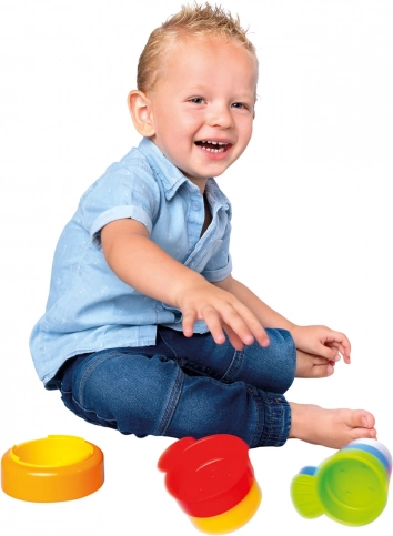 Każdy kubeczek ma swój kolor i rozmiar, co pomaga dzieciom naturalnie rozróżniać, sortować i uczyć się podstawowego liczenia podczas zabawy.