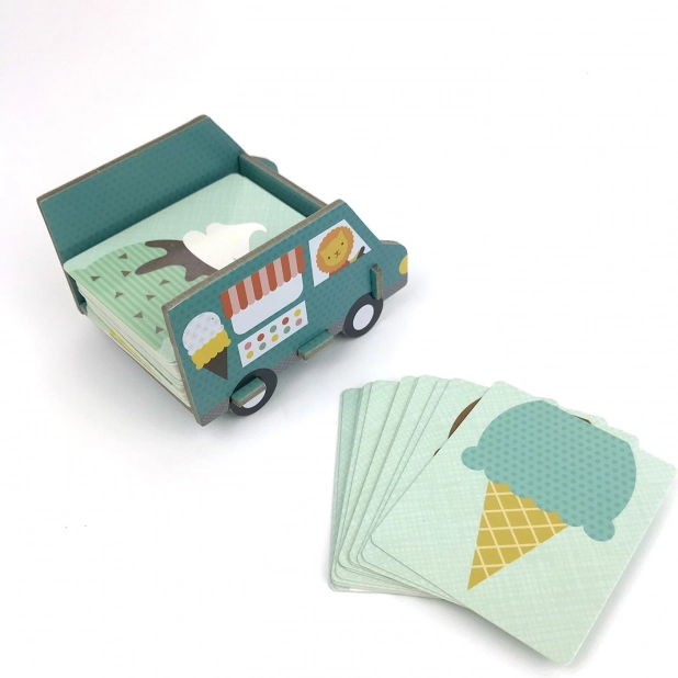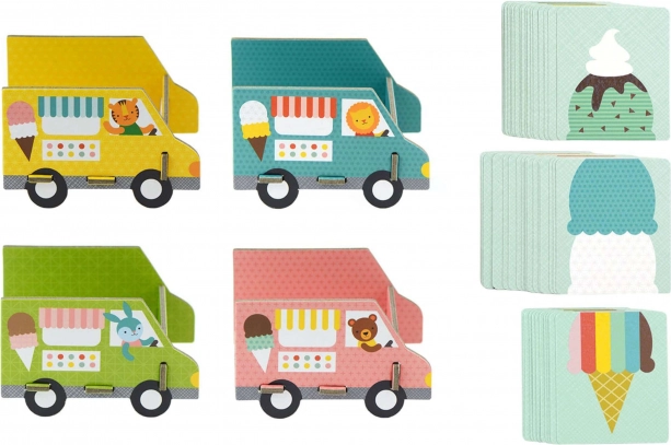 - 52 ilustrowane karty, 4 ciężarówki z lodami