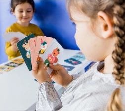 Karty zdobione są wesołymi ilustracjami zwierząt, które szczególnie ucieszą dzieci i pobudzą ich wyobraźnię.