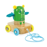 Ta oryginalna zabawka do ciągnięcia łączy zabawę i rozwój: drewnianego smoczka można łatwo zdjąć z podwozia i używać jako samodzielnej grzechotki. Kuleczki w środku tworzą przyjemny dźwięk, który zachęca dzieci do chodzenia i odkrywania świata.