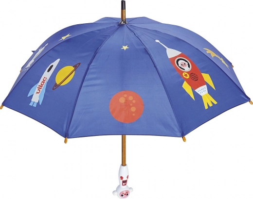 Stylowy dziecięcy parasol z motywem kosmosu od marki VILAC chroni małych odkrywców przed deszczem i jednocześnie zachwyca zabawnym projektem ilustratorki Ingeli P. Arrhenius. Ma solidną metalową konstrukcję, wygodny drewniany uchwyt i jest wyprodukowany we Francji.