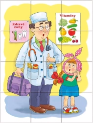 Zestaw zawiera puzzle z kolorowymi ilustracjami, które pomagają dzieciom uczyć się o różnych zawodach w zabawny sposób.