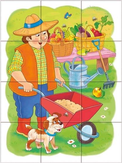 Dzięki tej układance dzieci poznają rozmaite profesje, takie jak policjant, kucharz czy rolnik.