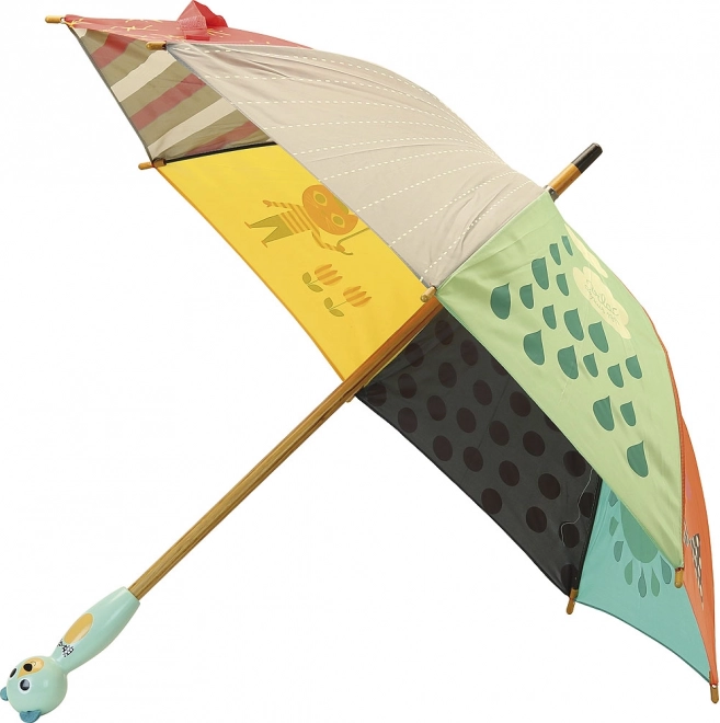 Ergonomiczna drewniana rączka dobrze leży w dłoni, nie ślizga się i wspiera samodzielność dzieci podczas otwierania i noszenia parasola.