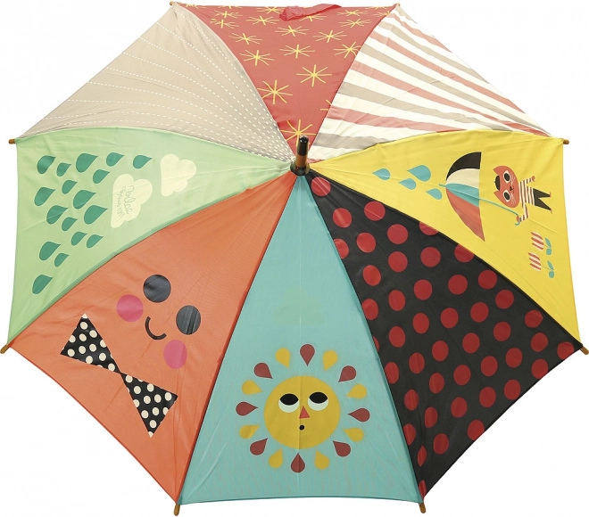Parasol został wyprodukowany we Francji z wysokiej jakości materiałów, z naciskiem na bezpieczeństwo i komfort małych użytkowników. Ergonomiczna drewniana rączka dobrze leży nawet w drobnych dziecięcych dłoniach, a płynne otwieranie ułatwia samodzielne korzystanie.