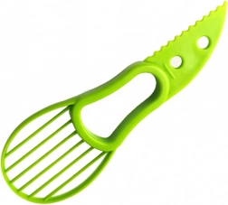 Plastykowe ostrze gładko przekroi awokado, nie uszkadzając miąższu. Ergonomiczny kształt zapewnia pewny chwyt i precyzyjne cięcia.