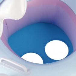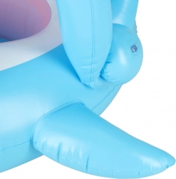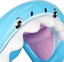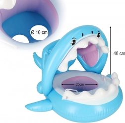 Dmuchany dziecięcy fotelik do wody w wesołym, rekinowym wzorze to świetny wybór na pierwsze oswajanie z wodą w basenie, rzece czy jeziorze. Odłączany baldachim chroni przed słońcem, a siedzisko z otworami na nogi stabilnie i wygodnie podtrzymuje dziecko.