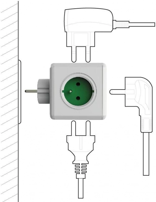 PowerCube Original to sprytne i kompaktowe rozwiązanie, gdy brakuje gniazdek. Jego strategicznie rozmieszczone gniazda zapobiegają nakładaniu się dużych zasilaczy i blokowaniu kolejnych miejsc. Rozdzielacz świetnie sprawdzi się w kuchni do jednoczesnego podłączenia ekspresu do kawy, czajnika, miksera czy tostera, a także w salonie za TV lub w biurze.