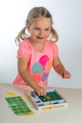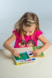 Ta mozaika to świetny wybór na pierwsze twórcze zabawy. Dzieci za pomocą pęsety wkładają kolorowe kuleczki w podstawkę i tworzą proste oraz pomysłowe motywy. Aktywność wspiera cierpliwość, koordynację ręka–oko i rozwój motoryki małej.