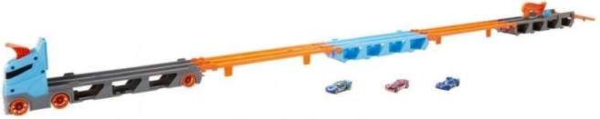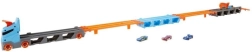 Poczuj emocje szybkiego wyścigu! Dzięki dźwigni na końcu toru pierwsze auto może ukończyć wyścig, podczas gdy drugie się zatrzyma. Wyścigowy transporter można połączyć z innymi zestawami do zabawy Hot Wheels City (sprzedawane oddzielnie), co pozwala stworzyć własną trasę wyścigową.