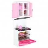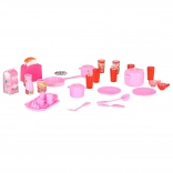 W zestawie znajduje się bogaty komplet akcesoriów: garnki z pokrywkami, patelnia, toster z ruchomą dźwignią, naczynia, kubki, kubeczki, „karton mleka”, przybory kuchenne na haczykach oraz „kostki lodu”. Otwierane szafki, wysuwana szuflada i półki uczą dzieci porządku, rozwijają małą motorykę i umiejętności społeczne.