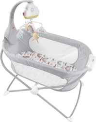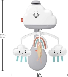 Przynieś do pokoju dziecka Fisher-Price Dziecięcy karuzela z muzyką i nocnym światłem z motywem chmur i delikatnymi kolorami, który emanuje nowoczesnym designem i harmonią. Ta karuzela lub latarnia jest idealna dla małych dzieci, które potrzebują pomocy przy zasypianiu.