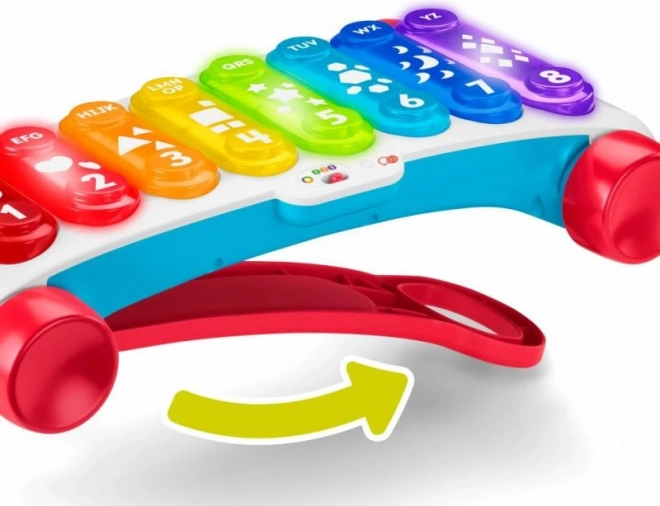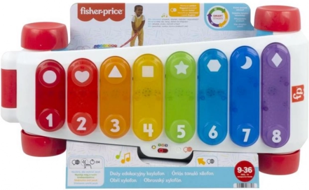 Duży edukacyjny ksylofon od Fisher-Price to nowa wersja klasycznej muzycznej zabawki do ciągnięcia, teraz z jeszcze większą dawką zabawy! Ten wyjątkowo duży interaktywny ksylofon oferuje 8 podświetlanych przycisków, które uruchamiają ponad 60 aktywacji dźwiękowych, w tym różne odgłosy, piosenki i wypowiedzi. Zabawka jest wyposażona w solidną składaną rączkę, dzięki czemu mali muzycy mogą bawić się zarówno na siedząco, jak i podczas spacerów z ciągniętym ksylofonem. Technologia poziomów nauki pozwala zmieniać sposób zabawy wraz z rozwojem dziecka. Edukacyjne zwroty i piosenki uczą między innymi alfabetu, cyfr i kształtów, a także prostych słów po angielsku. Naciśnij przycisk z globusem, aby wybrać język: czeski, polski, węgierski, słowacki lub angielski.