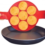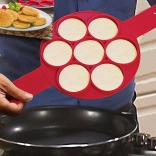 Praktyczna i wytrzymała silikonowa forma do przygotowania nawet siedmiu naleśników typu pancakes lub jajek sadzonych jednocześnie. Dzięki wysokiej jakości materiałowi jest nieprzywierająca, odporna na wysokie temperatury i łatwa w czyszczeniu – ręcznie i w zmywarce. Boczne uchwyty umożliwiają bezpieczne odwracanie dla równomiernego wypieczenia.