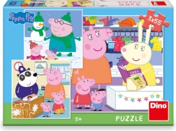 Ciesz się trzema zabawnymi puzzlami z PEPPA PIG, każdy z 55 elementami, idealne dla dzieci od 5 lat. Wytrzymała tektura, trening motoryki, uwagi i wyobraźni, wyprodukowane w Czechach.