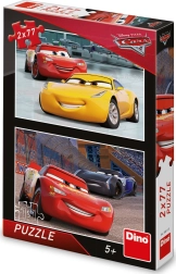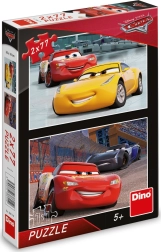 Podwójny zestaw puzzli z motywami z filmu CARS 3 ucieszy wszystkich małych fanów szybkich kół. Dwie układanki po 77 elementów rozwijają zręczność, wyobraźnię i zdolność koncentracji. Wysokiej jakości karton oraz produkcja w Czechach gwarantują bezpieczną i trwałą zabawę z Zygzakiem McQueenem, Cruz Ramirez i Jacksonem Sztormem.