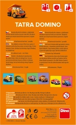 Domino DINO TATRA zapoznaje dzieci z legendarnymi czeskimi ciężarówkami i pojazdami specjalnymi. Podczas dopasowywania obrazków w formie zabawy trenują koncentrację, refleks oraz logiczne myślenie. Dzięki wysokiej jakości kartonowi gra jest lekka, poręczna i odpowiednia w podróż, więc zajmie dzieci zarówno w domu, jak i na wycieczkach.