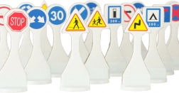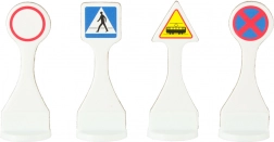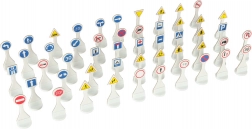 Szeroki wybór najczęściej używanych znaków w różnych kształtach i kolorach pozwala dzieciom tworzyć realistyczne sytuacje drogowe i uczyć się bezpiecznie poprzez zabawę.
