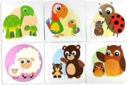 Ta prosta gra edukacyjna jest idealna do pierwszej nauki przez zabawę. Dzieci dopasowują małe i duże zwierzątko, badają kształt, właściwe ułożenie i wkładają wyjmowane elementy w odpowiadające im otwory na płytkach. Każda prawidłowo dobrana para wzmacnia pewność siebie i chęć odkrywania.