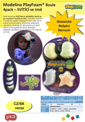 Ten pakiet zawiera modelinę w czterech delikatnych, fosforyzujących kolorach, które świecą w ciemności. Doskonałe spoiwo zapewnia, że modelina pozostaje razem, nie wysycha, a dzieci mogą bawić się nią raz po raz.